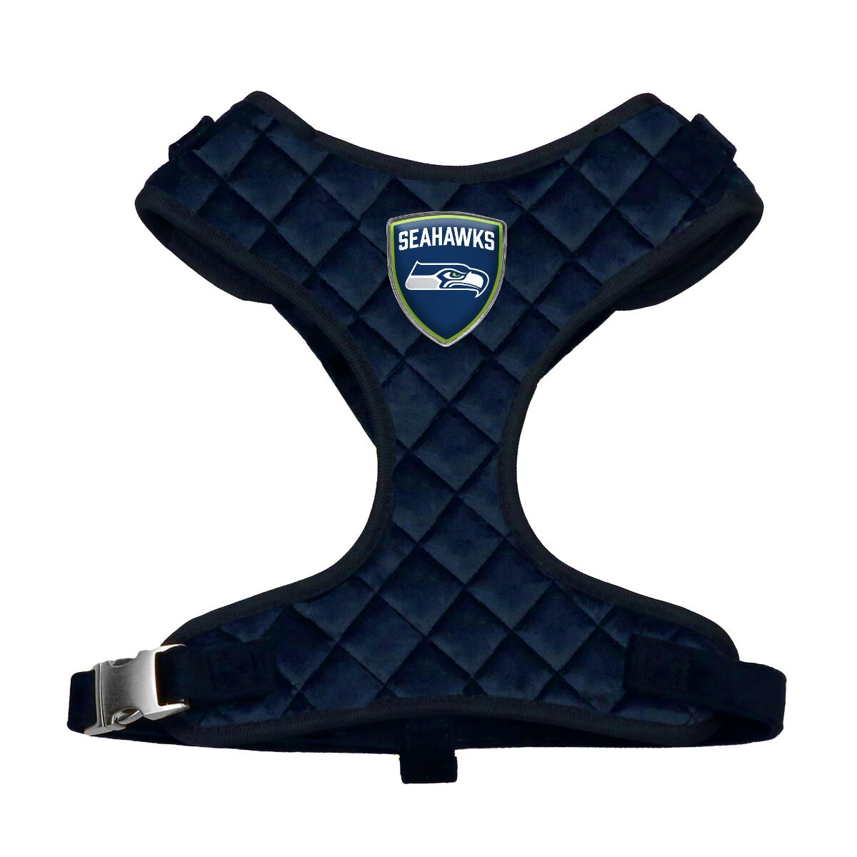 Show off your team spirit this season with this Velvet Dog Harness - XS Vest. This Harness - XS has an embroidered team logo on the chest. Soft Breathable Mesh will keep your best friend comfy. Extra features include the reflective safety stripe, quick-snap buckle with an adjustable chest strap.