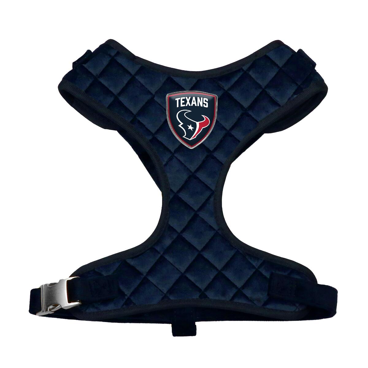 Show off your team spirit this season with this Velvet Dog Harness - XS Vest. This Harness - XS has an embroidered team logo on the chest. Soft Breathable Mesh will keep your best friend comfy. Extra features include the reflective safety stripe, quick-snap buckle with an adjustable chest strap.