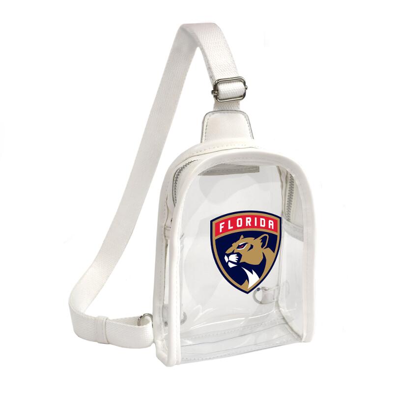 Go to games in style with these new Clear Stadium Sling Bags! This is a PVC Bag with polyester white trim and nickle plated hardware. The strap connects to either side of the bag with your favorite teams full color logo on it. These measure Length: 5.5", Width: 2.5", Height: 7.5"