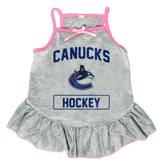 This adorable dress is the perfect accessory for your pet! Features a large logo of your favorite team, and a small pink bow for a touch of extra cuteness. Poly/cotton blend, Stretch fabric is easy to pull on and off your pet. This item is non returnable due to hygienic reasons.