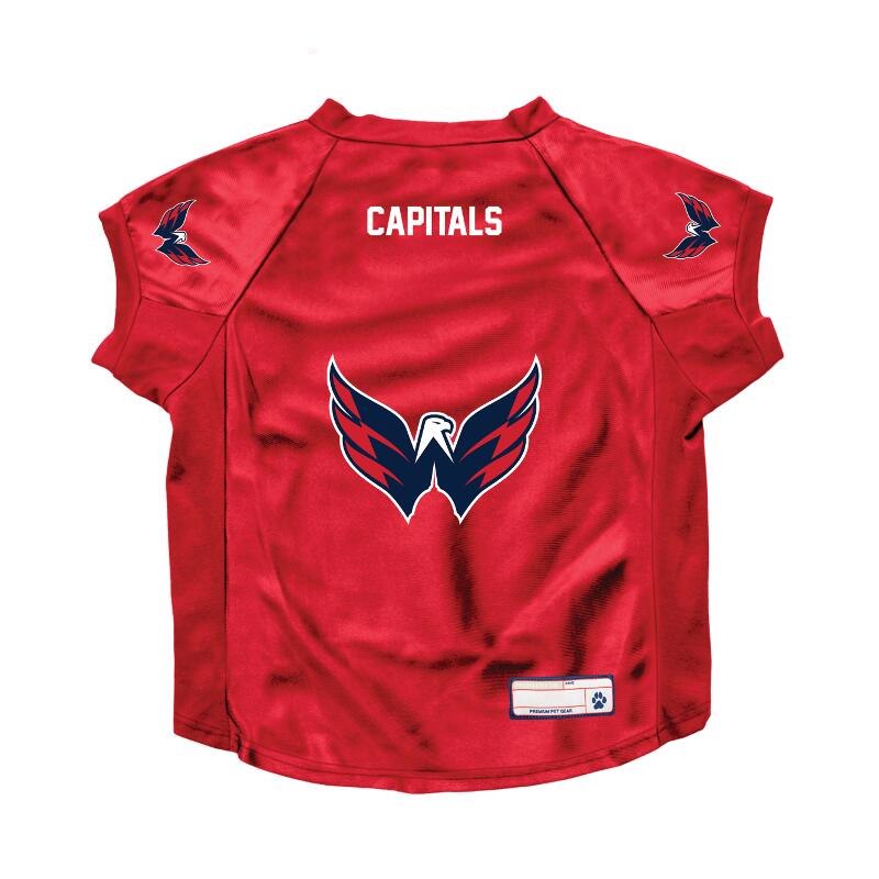 Dyed-to-match team color dazzle fabric, Authentic team uniform graphics; including full sleeve striping; numbers and collar decoration, Woven jock tag, Officially licensed, FOR BIG DOG SIZE ONLY: Velcro at the neck & two adjustable straps under the belly