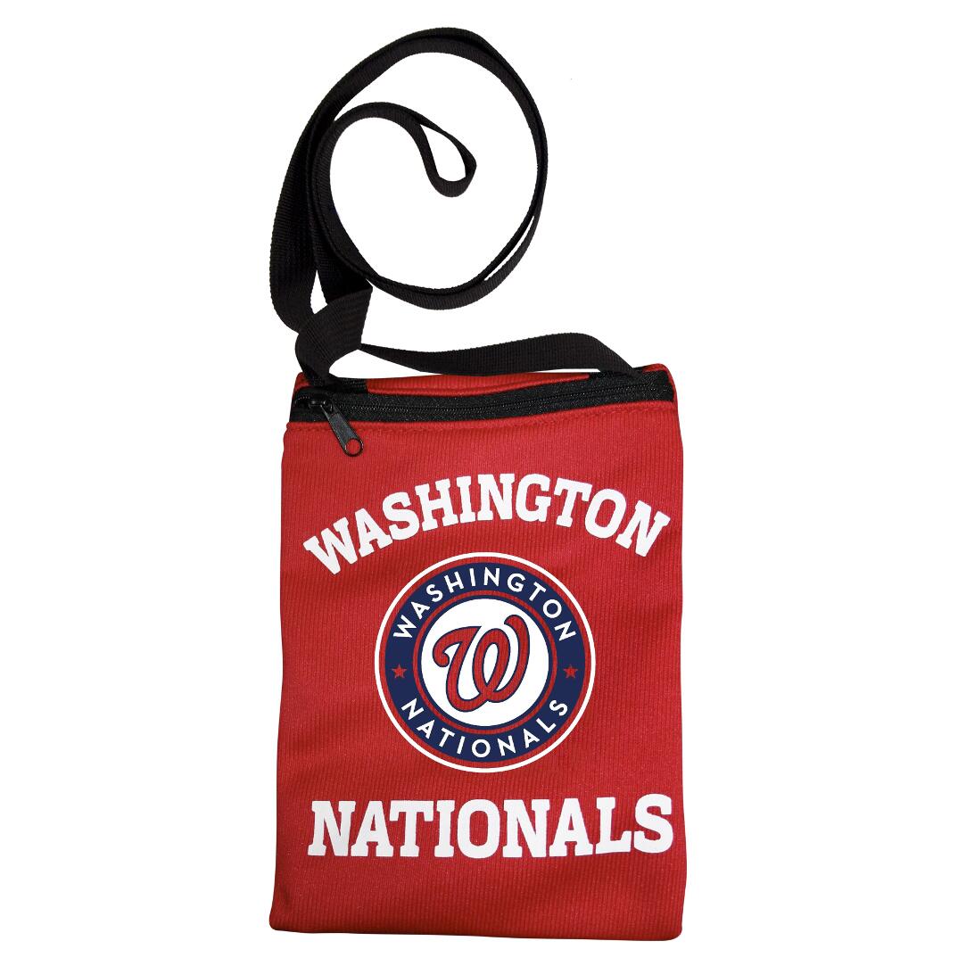 Small enough to carry around comfortably but large enough to hold your essentials! This NFL Game Day Pouch is perfect for easily accessing your cell phone, keys, money, chapstick and more. The pouch is made from NFL jersey material and features screen printed team graphics, a zipper closure and a 42" length cross body nylon strap. Made By Little Earth