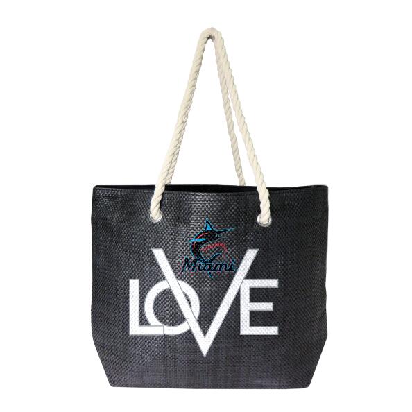 Be environmentally friendly and fashionable while carrying the Love Tote by Littlearth. Featuring a "love heart" and your team's full color logo, this light-weight tote is made of woven paper with a braided rope handle. Body material: 100% paper, Lining: 100% polyester, Handle: 100% cotton. Measures 20 inches wide, 6 inches deep, and 14 inches tall. Polyester lining with interior patch pocket