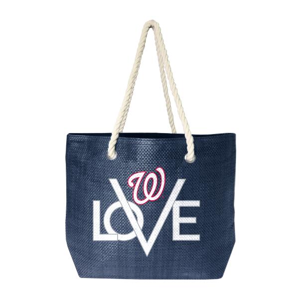 Be environmentally friendly and fashionable while carrying the Love Tote by Littlearth. Featuring a "love heart" and your team's full color logo, this light-weight tote is made of woven paper with a braided rope handle. Body material: 100% paper, Lining: 100% polyester, Handle: 100% cotton. Measures 20 inches wide, 6 inches deep, and 14 inches tall. Polyester lining with interior patch pocket
