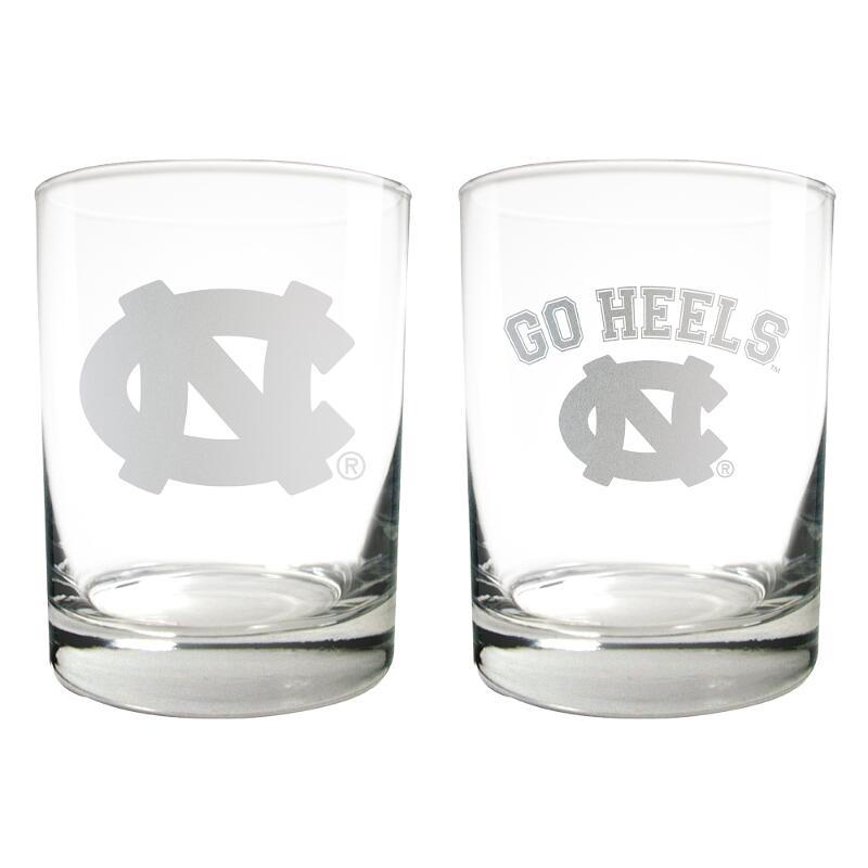 North Carolina Tar Heels 2pc Rocks Glass Set