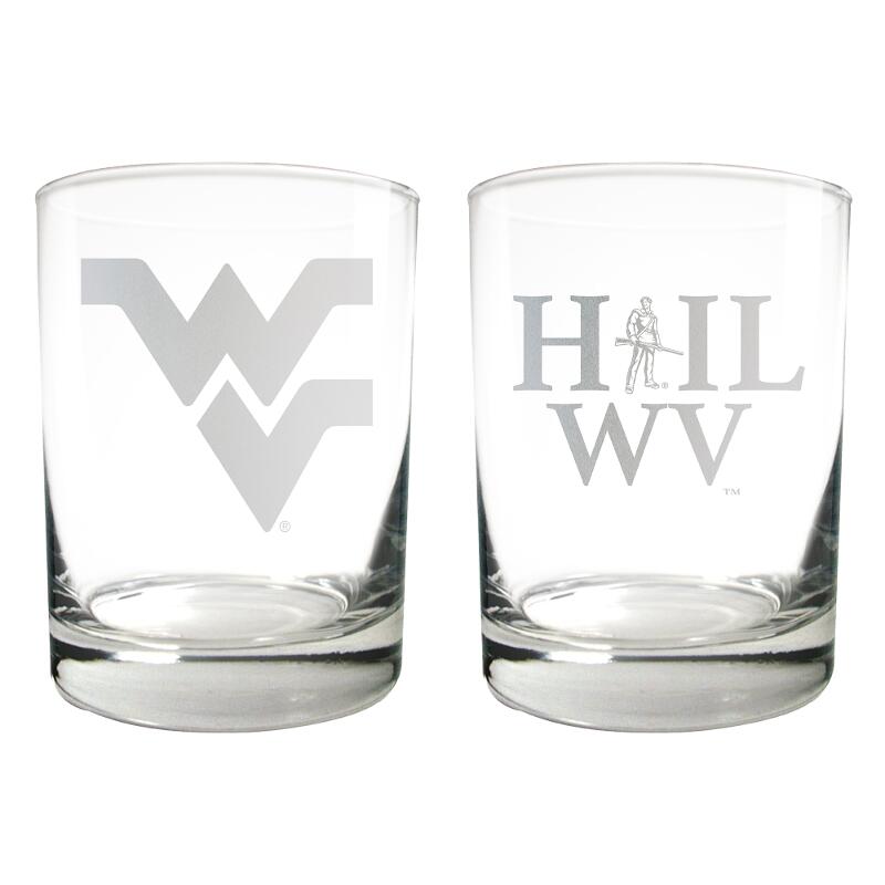 West Virginia Mountaineers 2pc Rocks Glass Set