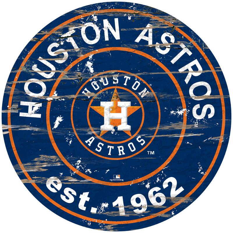 Enhance your space with our Distressed 24" Round Sign, a stunning circular piece that showcases your favorite team's name, established date, and logo. This eye-catching sign is designed in your team's colors and features a distressed wood pattern, adding a vintage and rustic touch to your decor. Made in the USA