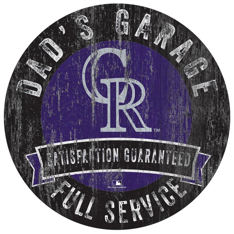 Enhance your dad's special space with our Dad's Garage Sign. This 12" circular piece features your favorite team's logo prominently displayed in the center, exuding team pride. Below the logo, the phrase "Satisfaction Guaranteed" assures your dad's commitment to excellent service. The top edge of the circle proudly bears the words "Dad's Garage," while the bottom edge states "Full Service," emphasizing the comprehensive support provided. The entire piece is beautifully designed in your favorite team's colors, showcasing your love for your father and your team.