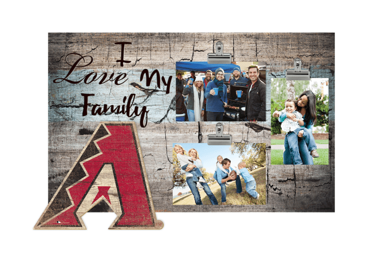 Our I Love My Family 11x19 Clip Frame is the perfect way to show your team spirit and love for your family at the same time. With a distressed wood look background and your favorite team's logo on the bottom left, this frame will add a touch of rustic charm to any room. The phrase "I Love My Family" is printed above the logo, making it a great gift for a loved one or a family member.