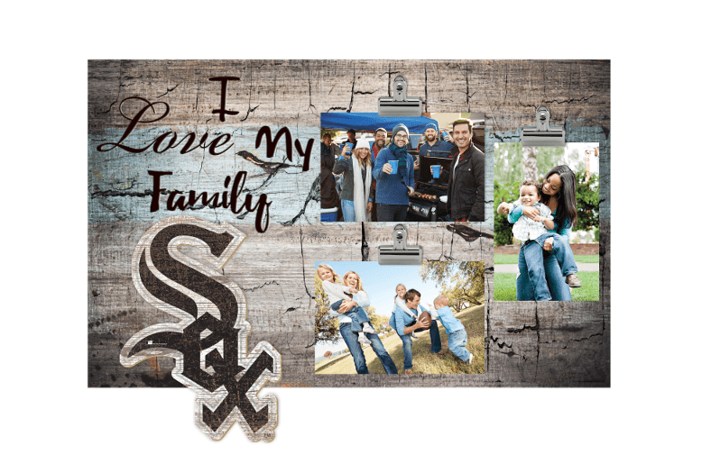 Our I Love My Family 11x19 Clip Frame is the perfect way to show your team spirit and love for your family at the same time. With a distressed wood look background and your favorite team's logo on the bottom left, this frame will add a touch of rustic charm to any room. The phrase "I Love My Family" is printed above the logo, making it a great gift for a loved one or a family member.