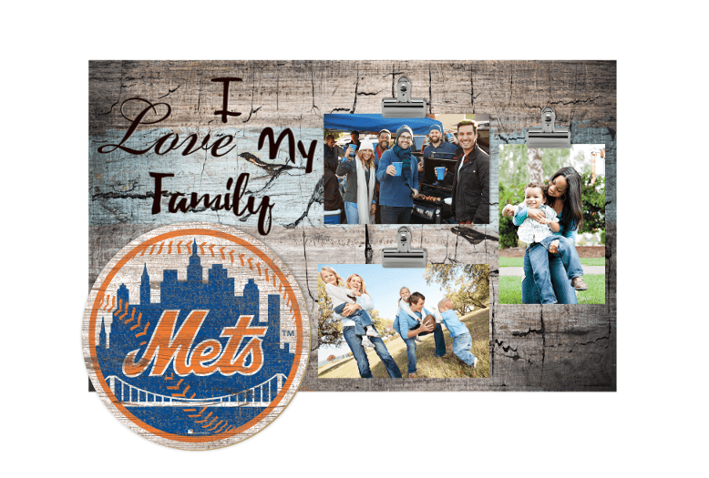 Our I Love My Family 11x19 Clip Frame is the perfect way to show your team spirit and love for your family at the same time. With a distressed wood look background and your favorite team's logo on the bottom left, this frame will add a touch of rustic charm to any room. The phrase "I Love My Family" is printed above the logo, making it a great gift for a loved one or a family member.