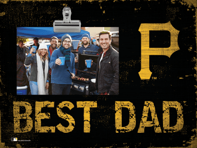 Display your favorite photo with your dad and your love for your favorite sports team with the Best Dad Clip Frame. This frame features your teams logo and colors along with the phrase "Best Dad" printed on MDF. The clip on the top makes it easy to change out the photo whenever you want.