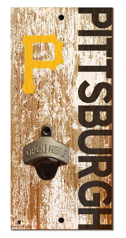 This Bottle Opener Wall Decor is the perfect addition to any fan's collection. The piece features your favorite team's logo prominently displayed on the top, with your team's name printed along the right side of the piece. The background boasts a distressed wood design for a rustic look that is sure to impress. Hang this Bottle Opener Wall Decor on any wall to show off your team spirit. The piece is made from durable Cedar Wood and is cut and printed to ensure a high-quality finish. Proudly Made in the USA, this wall decor is sure to be a fan favorite for years to come.