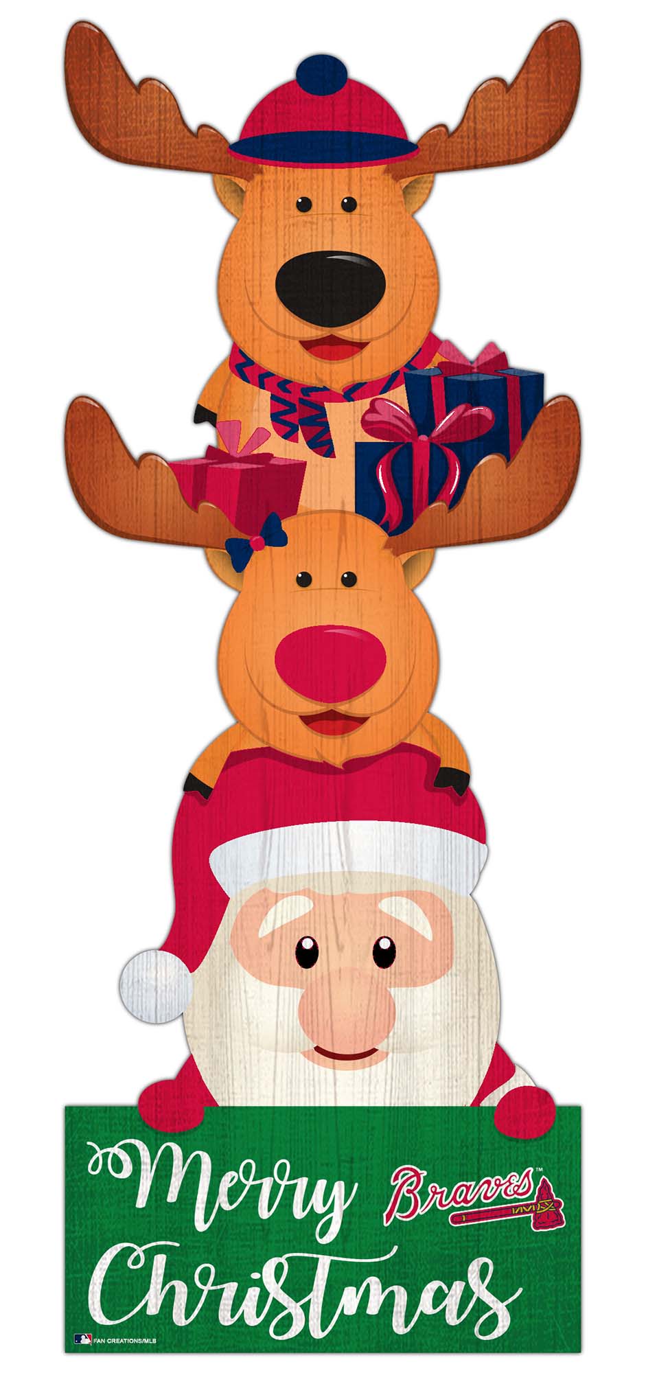 Get into the holiday spirit with our Santa Stack 31in Leaner! This 31" piece is cut and printed to represent a stack of Santa and his reindeer with the phrase "Merry Christmas" at the bottom, all in your favorite team's colors and with your team's logo. Cut and printed on MDF, Made in the USA