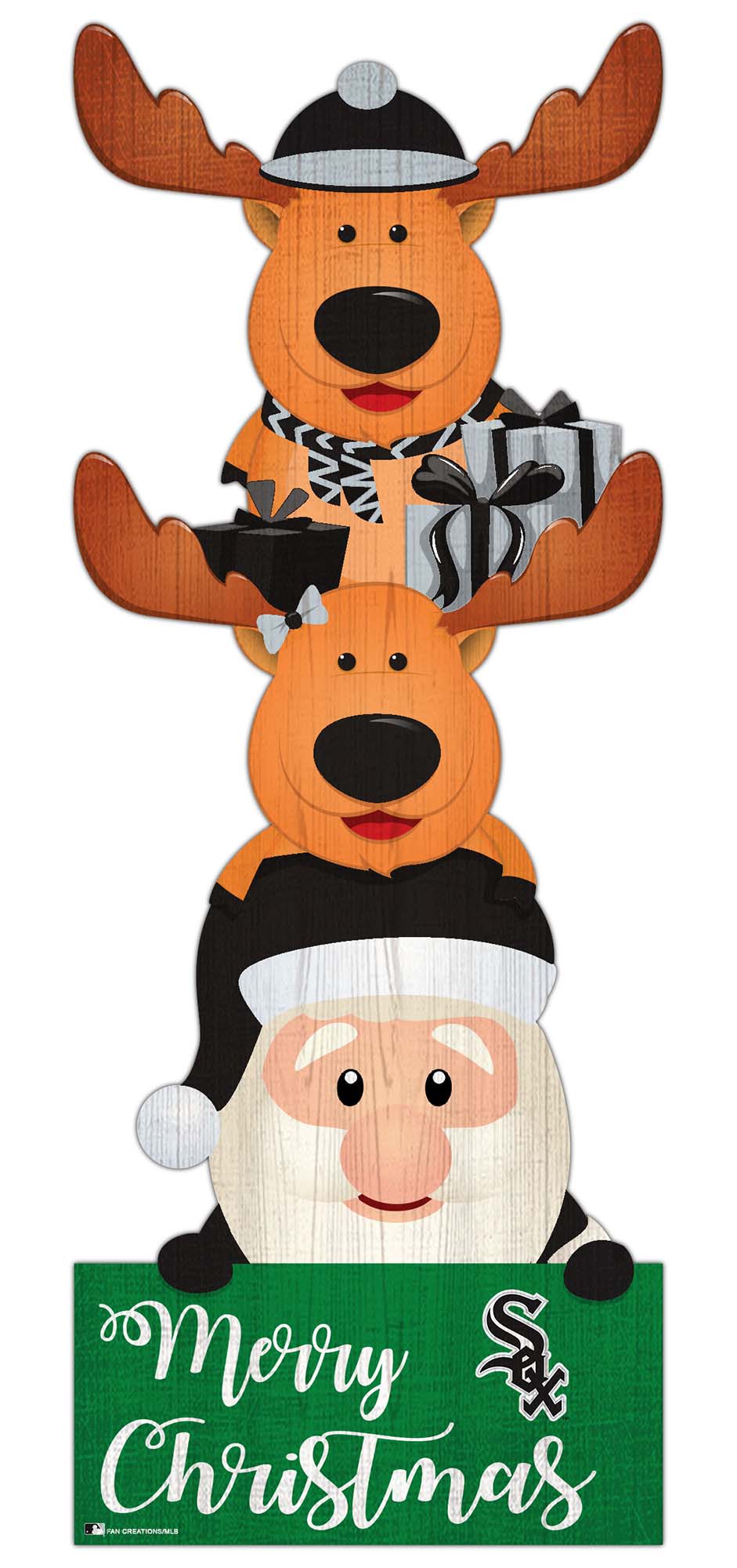 Get into the holiday spirit with our Santa Stack 31in Leaner! This 31" piece is cut and printed to represent a stack of Santa and his reindeer with the phrase "Merry Christmas" at the bottom, all in your favorite team's colors and with your team's logo. Cut and printed on MDF, Made in the USA