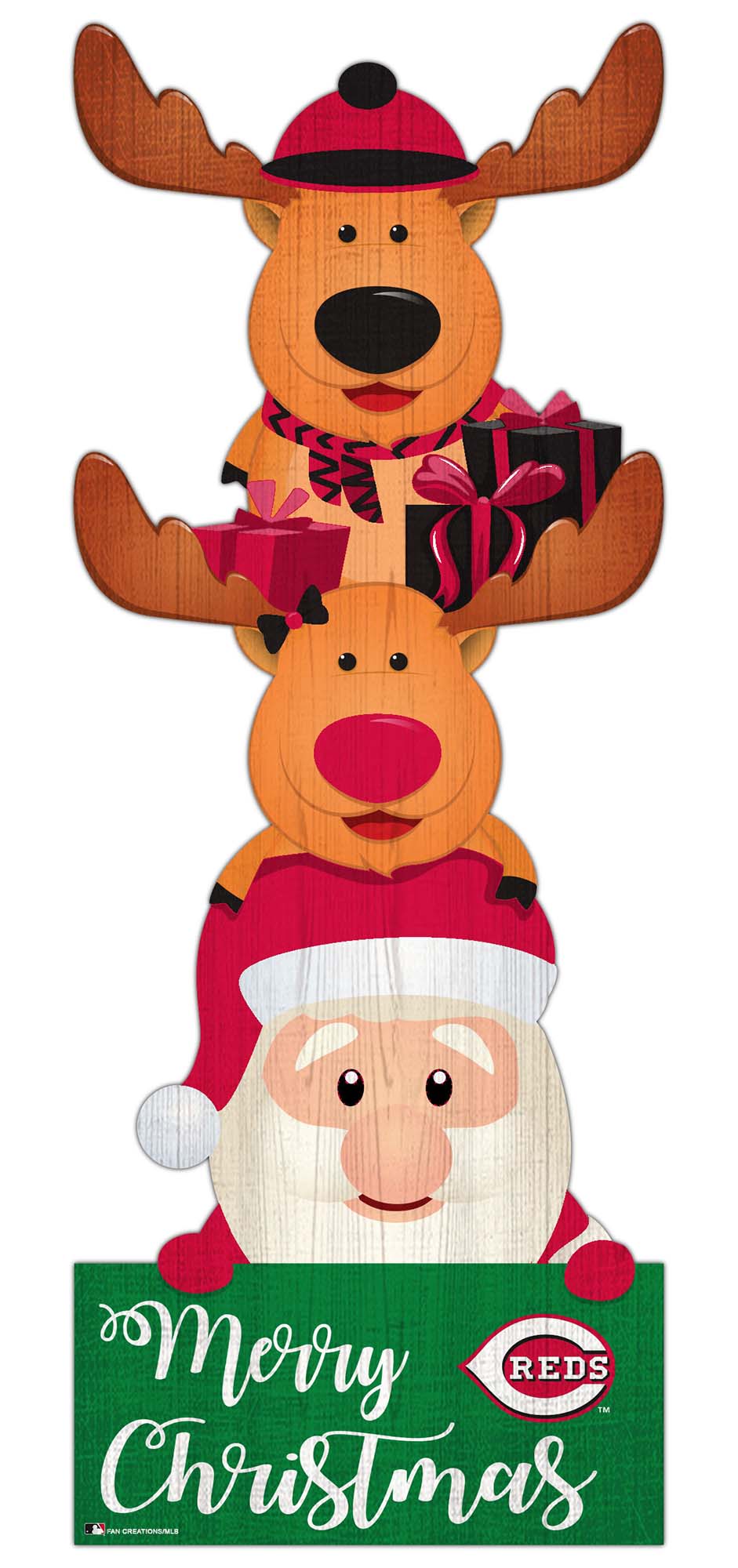 Get into the holiday spirit with our Santa Stack 31in Leaner! This 31" piece is cut and printed to represent a stack of Santa and his reindeer with the phrase "Merry Christmas" at the bottom, all in your favorite team's colors and with your team's logo. Cut and printed on MDF, Made in the USA