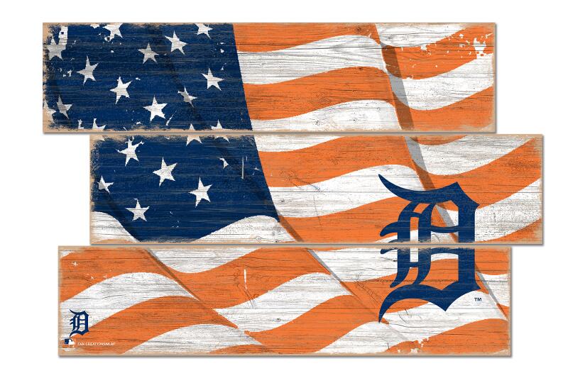 Here's a great way to display your fan loyalty with this cool three plank wall sign by Fan Creations wth your team's logo and the American Flag! Digitally printed on Medium Density Fibreboard (MDF), it features three individual 6" x 24" panels and a distressed white background with team logos, team name and date established. Proudly hang it in the office, the game room or man cave.