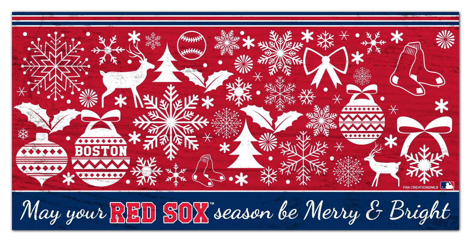Boston Red Sox Merry and Bright 6x12 Sign