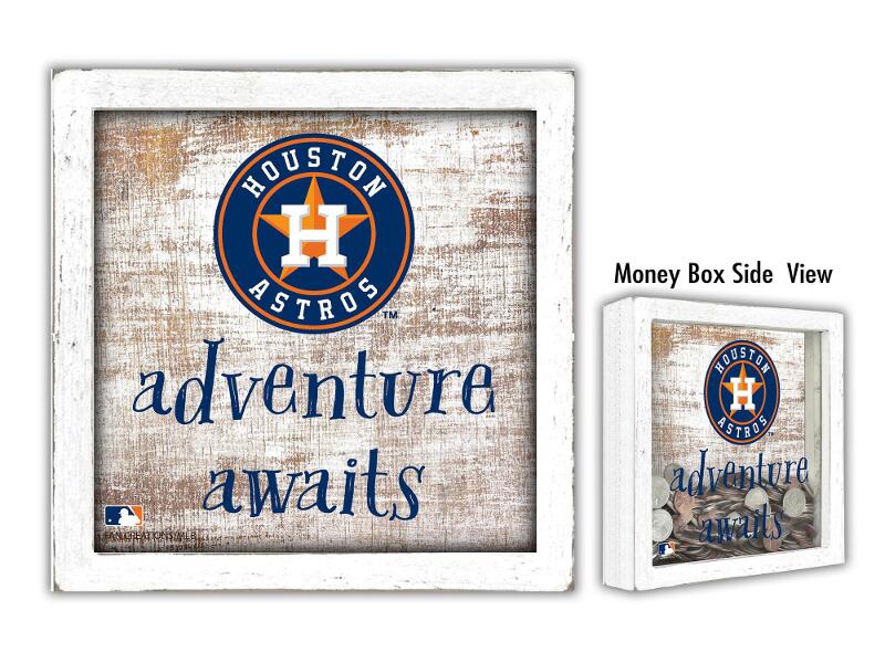 The Adventure Awaits Money Box is a stylish way to save up for your next adventure while showing off your team pride. This money box features your favorite team's logo and the phrase "Adventure Awaits" below it, making it a perfect addition to your desk or countertop. Cut and printed on durable MDF and acrylic materials, Printed and assembled in the USA