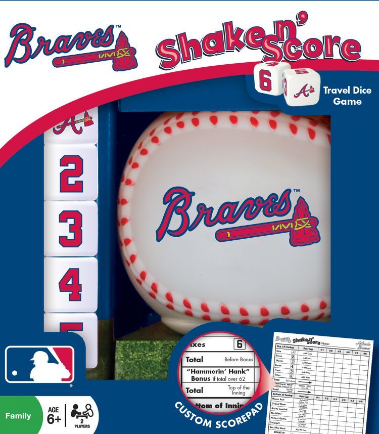 Introducing the Officially Licensed Shake N' Score Dice Game! This MasterPieces Shake n' Score Dice Game is a collectible travel game for fans everywhere! It is perfect for tailgating or having fun at home with the family! Try to get as many points as possible by rolling different combinations of all five dice! The Shake n' Score Dice Game includes a team dice cup, 5 team dice, and an team logo score pad! Two or more fans, ages 6+, can play this travel dice game!