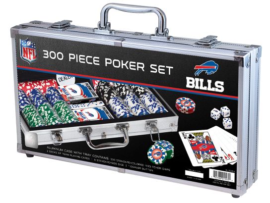 Up the Ante with this 300 Piece Game Chips Set. This portable set features 300 high-quality 11.5-gram casino-style Game Chips in five different colors with team designs. The set also includes two decks of custom team playing cards, a dealer button, and 6 team dice all housed in a sleek aluminum carrying case. This Game Chips Set is ideal for Texas Hold’em, Blackjack, tournaments, card clubs, and more! Support your favorite college with officially licensed and approved products. Perfect for all fans! Game Chips Set Includes: -300 standard-colored game chips (11.5g) featuring two team designs. 60 White Chips, 60 Red Chips, 60 Blue Chips, 60 Green Chips, 60 Black Chips. -6 standard size (16mm) dice featuring your teams logo and colors on each die. -2 Decks of Playing Cards. Card-back designs feature your favorite team’s logo. All face cards and jokers have detailed, custom team designs. Each standard deck includes 52 cards and 2 Jokers. -1 Dealer Button -Easy to carry sturdy Aluminum case with black velour interior to protect and organize poker chips, playing cards, and dice.