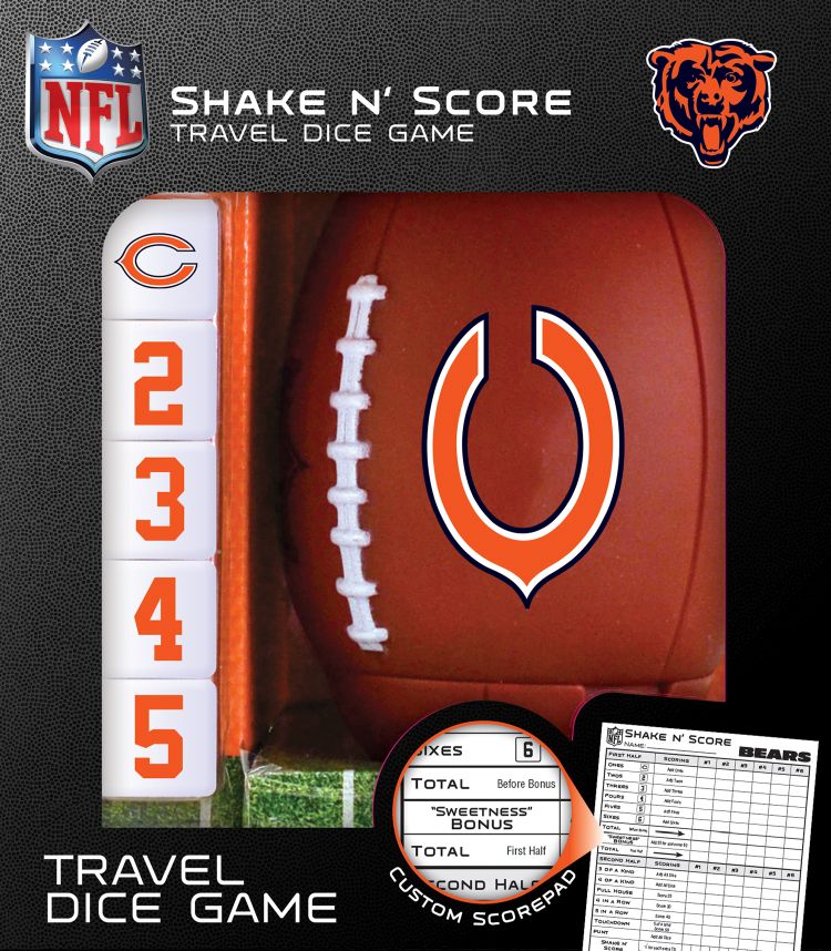 Introducing the Officially Licensed Shake N' Score Dice Game! This MasterPieces Shake n' Score Dice Game is a collectible travel game for fans everywhere! It is perfect for tailgating or having fun at home with the family! Try to get as many points as possible by rolling different combinations of all five dice! The Shake n' Score Dice Game includes a team dice cup, 5 team dice, and an team logo score pad! Two or more fans, ages 6+, can play this travel dice game!