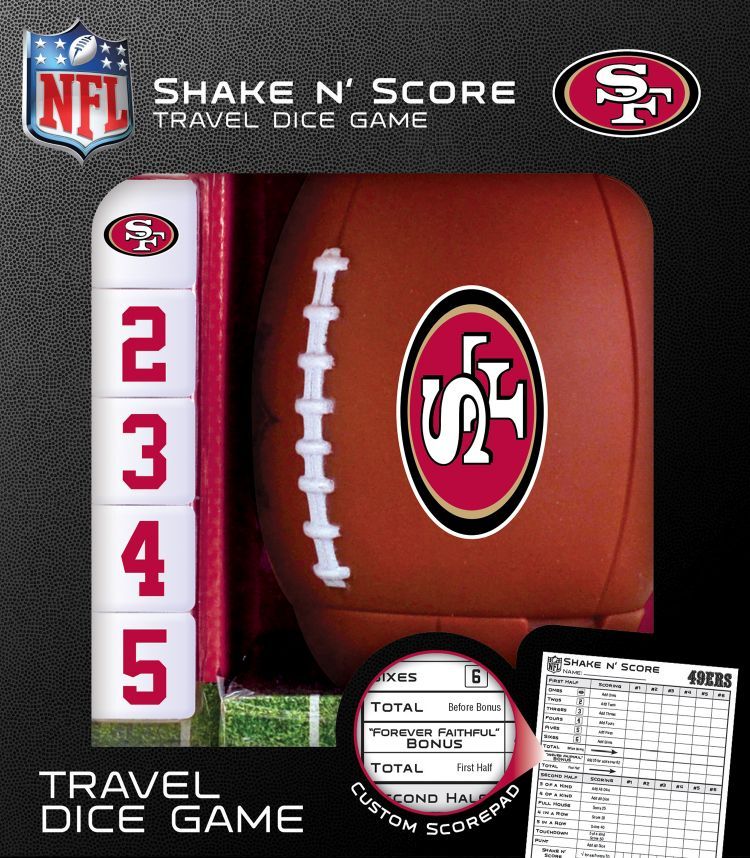 Introducing the Officially Licensed Shake N' Score Dice Game! This MasterPieces Shake n' Score Dice Game is a collectible travel game for fans everywhere! It is perfect for tailgating or having fun at home with the family! Try to get as many points as possible by rolling different combinations of all five dice! The Shake n' Score Dice Game includes a team dice cup, 5 team dice, and an team logo score pad! Two or more fans, ages 6+, can play this travel dice game!