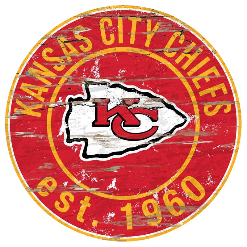 Enhance your space with our Distressed 24" Round Sign, a stunning circular piece that showcases your favorite team's name, established date, and logo. This eye-catching sign is designed in your team's colors and features a distressed wood pattern, adding a vintage and rustic touch to your decor. Made in the USA