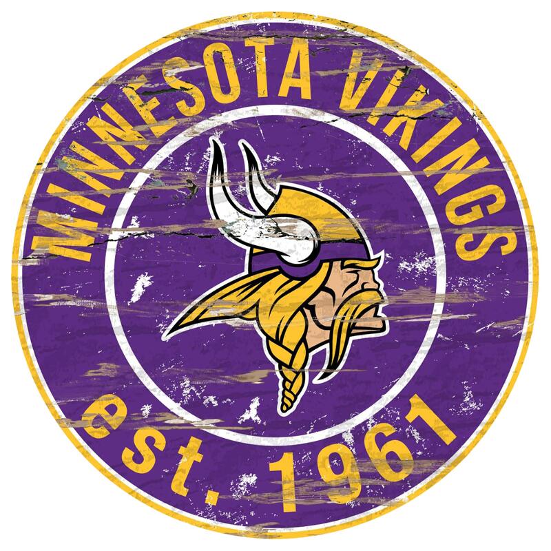 Enhance your space with our Distressed 24" Round Sign, a stunning circular piece that showcases your favorite team's name, established date, and logo. This eye-catching sign is designed in your team's colors and features a distressed wood pattern, adding a vintage and rustic touch to your decor. Made in the USA
