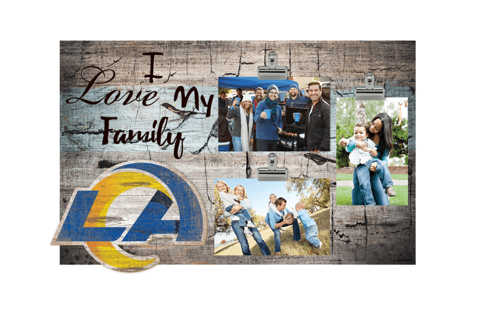 Our I Love My Family 11x19 Clip Frame is the perfect way to show your team spirit and love for your family at the same time. With a distressed wood look background and your favorite team's logo on the bottom left, this frame will add a touch of rustic charm to any room. The phrase "I Love My Family" is printed above the logo, making it a great gift for a loved one or a family member.