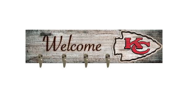 Welcome guests into your home while showcasing your team spirit with our Coat Hanger. This stylish piece features your favorite team's logo on the right side, accompanied by the word "Welcome" to the left. The hangers below provide a convenient and organized space for hanging coats, ensuring a clutter-free entryway. The distressed wood design of the background adds a rustic and inviting touch to any wall.