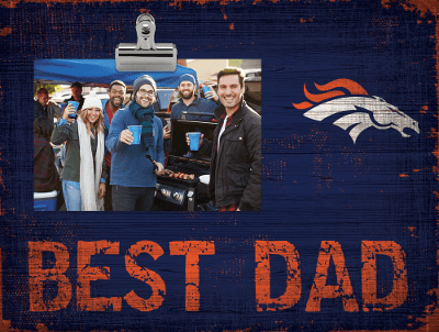Display your favorite photo with your dad and your love for your favorite sports team with the Best Dad Clip Frame. This frame features your teams logo and colors along with the phrase "Best Dad" printed on MDF. The clip on the top makes it easy to change out the photo whenever you want.