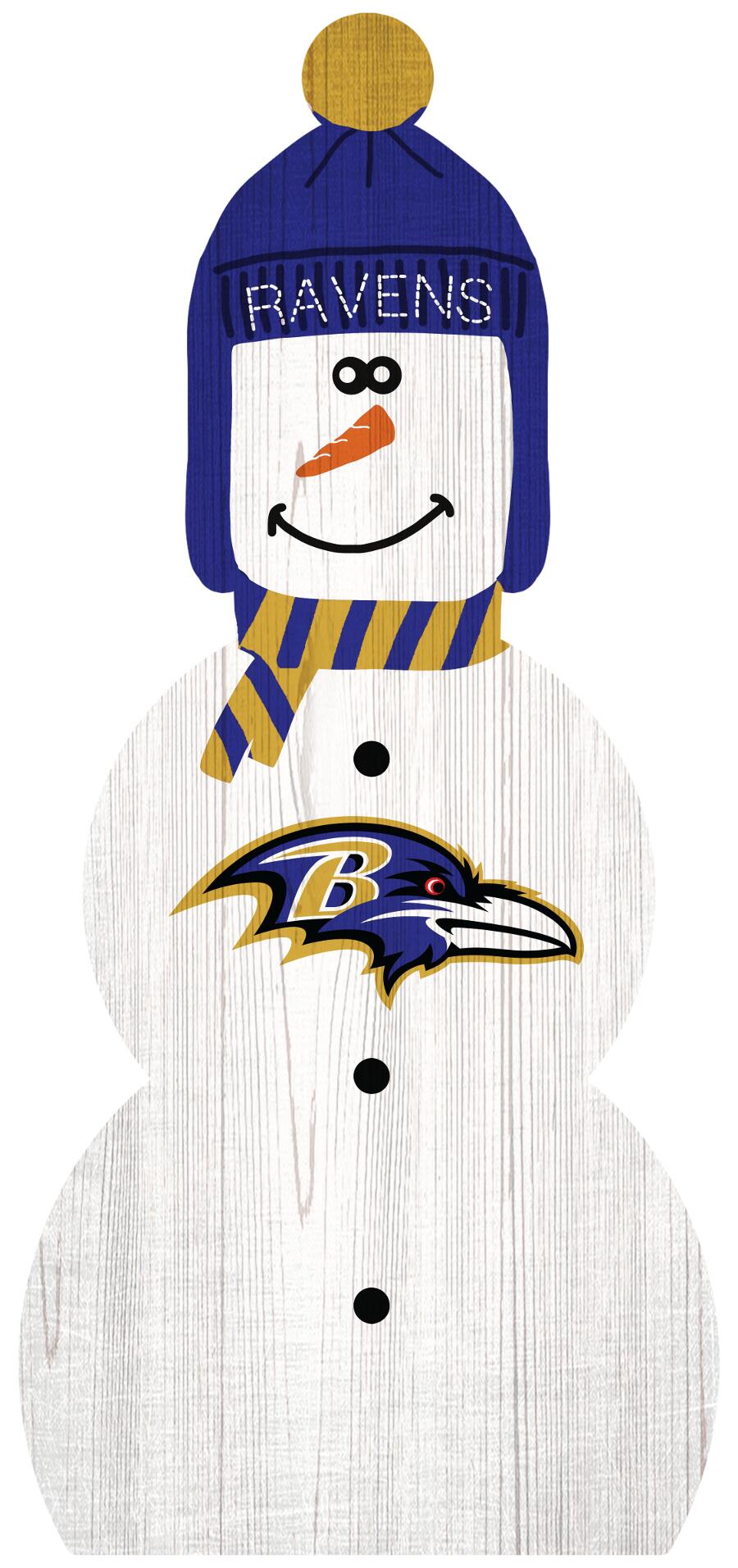 Get in the holiday spirit and show off your team pride with our Snowman 31in Leaner. This 33" leaner is cut and printed to represent a snowman with your favorite team's name, logo, and team colors.