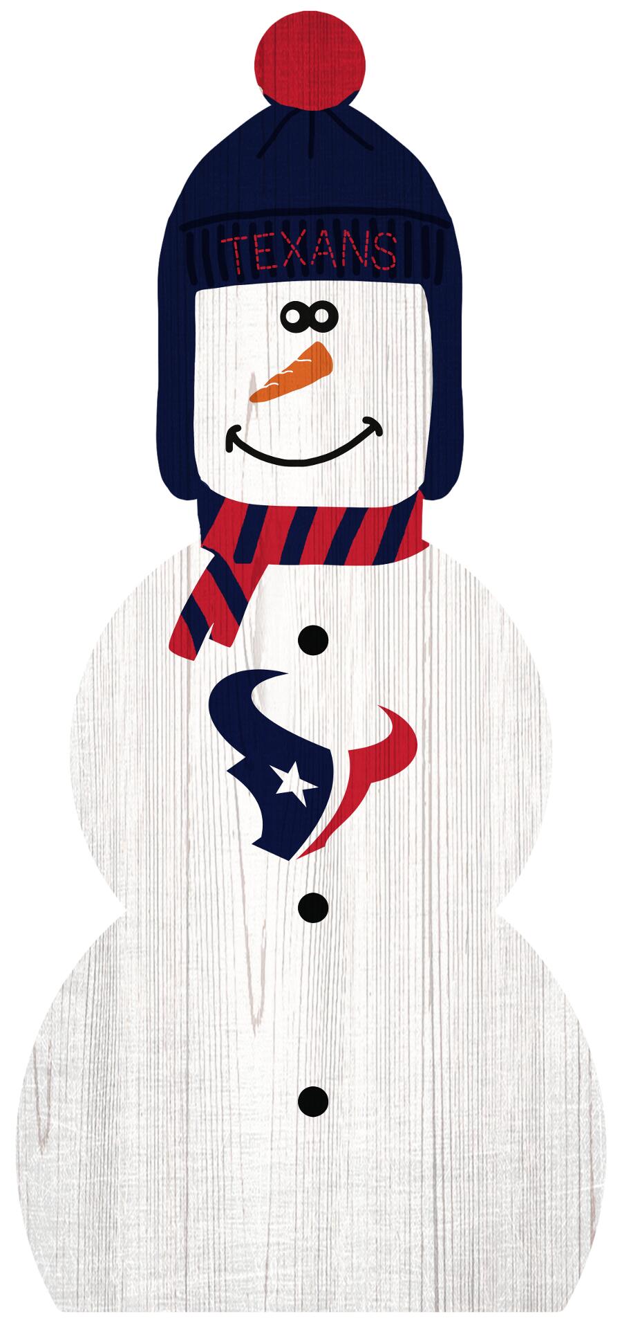 Get in the holiday spirit and show off your team pride with our Snowman 31in Leaner. This 33" leaner is cut and printed to represent a snowman with your favorite team's name, logo, and team colors.