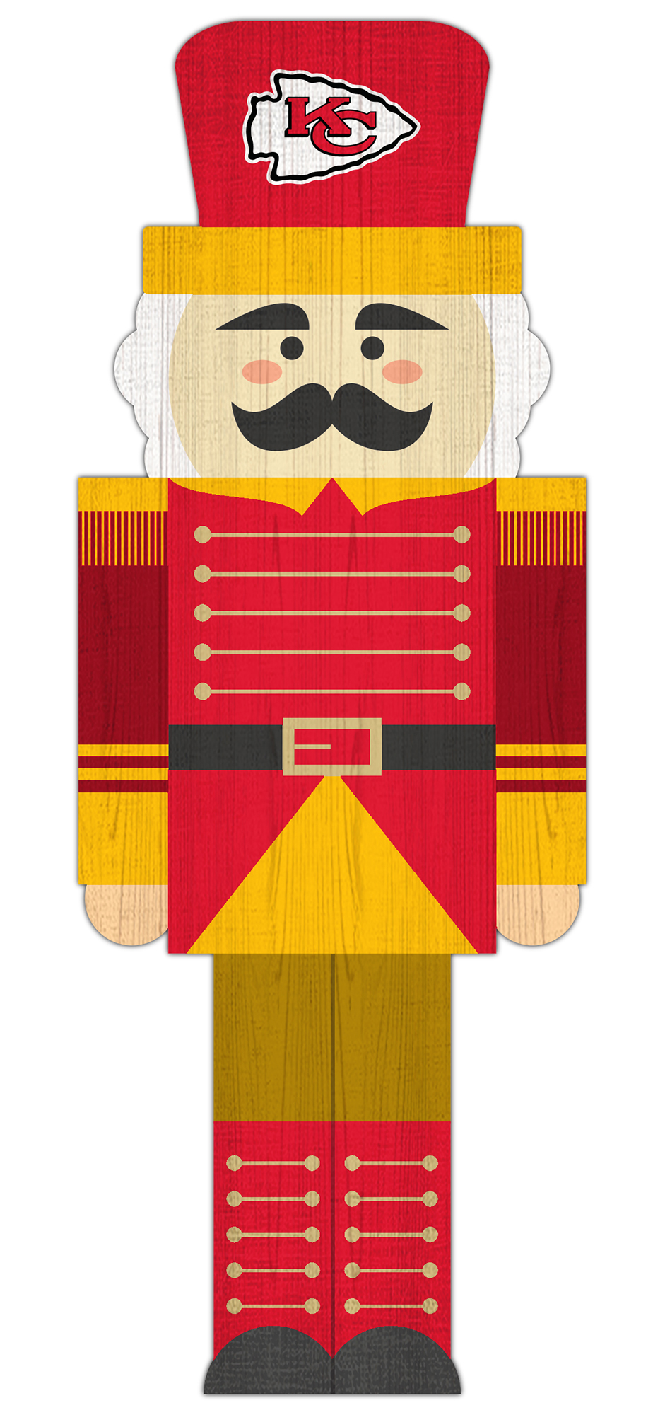 Get into the holiday spirit with our Nutcracker 31in Leaner. This 31" leaner is cut and printed to represent a Nutcracker with your favorite team's logo and colors on it. Perfect for displaying in any room or against any wall, it's a great way to show your team pride and holiday spirit. Plus, it's made in the USA with high-quality MDF for a durable and long-lasting decoration.