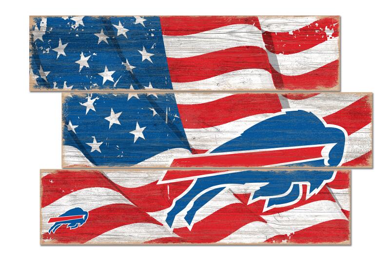 Here's a great way to display your fan loyalty with this cool three plank wall sign by Fan Creations wth your team's logo and the American Flag! Digitally printed on Medium Density Fibreboard (MDF), it features three individual 6" x 24" panels and a distressed white background with team logos, team name and date established. Proudly hang it in the office, the game room or man cave.