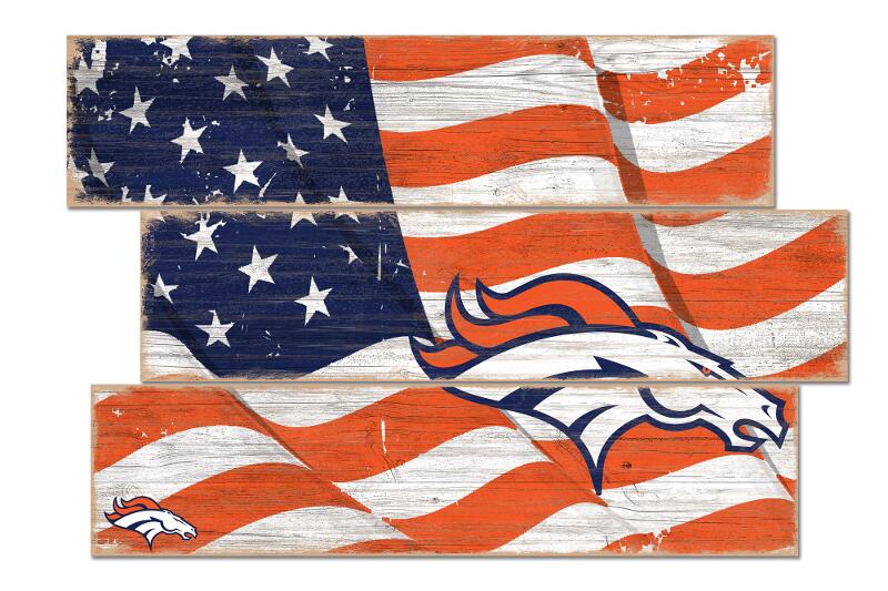 Here's a great way to display your fan loyalty with this cool three plank wall sign by Fan Creations wth your team's logo and the American Flag! Digitally printed on Medium Density Fibreboard (MDF), it features three individual 6" x 24" panels and a distressed white background with team logos, team name and date established. Proudly hang it in the office, the game room or man cave.