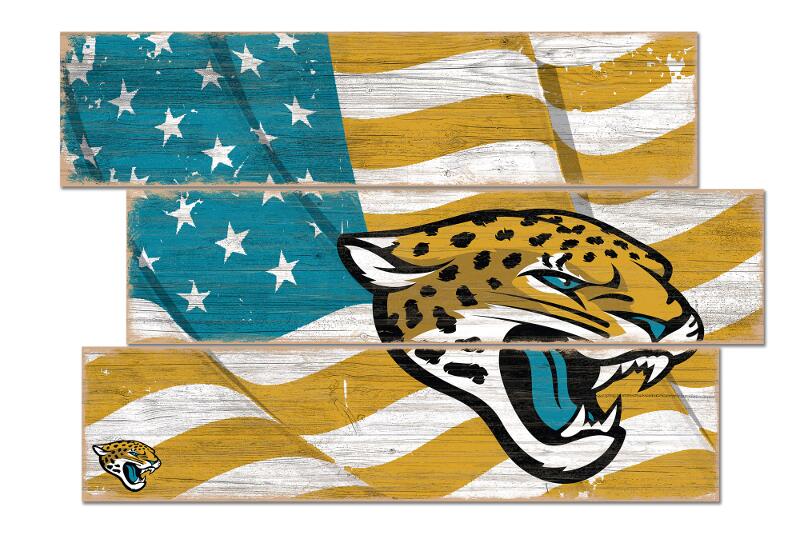 Here's a great way to display your fan loyalty with this cool three plank wall sign by Fan Creations wth your team's logo and the American Flag! Digitally printed on Medium Density Fibreboard (MDF), it features three individual 6" x 24" panels and a distressed white background with team logos, team name and date established. Proudly hang it in the office, the game room or man cave.