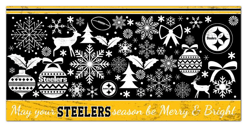 Pittsburgh Steelers Merry and Bright 6x12 Sign