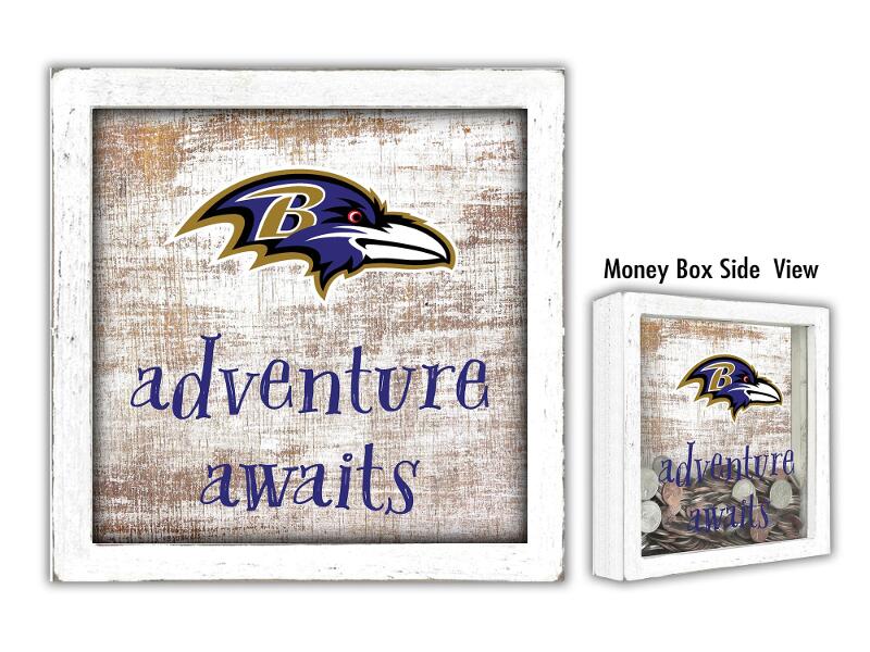 The Adventure Awaits Money Box is a stylish way to save up for your next adventure while showing off your team pride. This money box features your favorite team's logo and the phrase "Adventure Awaits" below it, making it a perfect addition to your desk or countertop. Cut and printed on durable MDF and acrylic materials, Printed and assembled in the USA