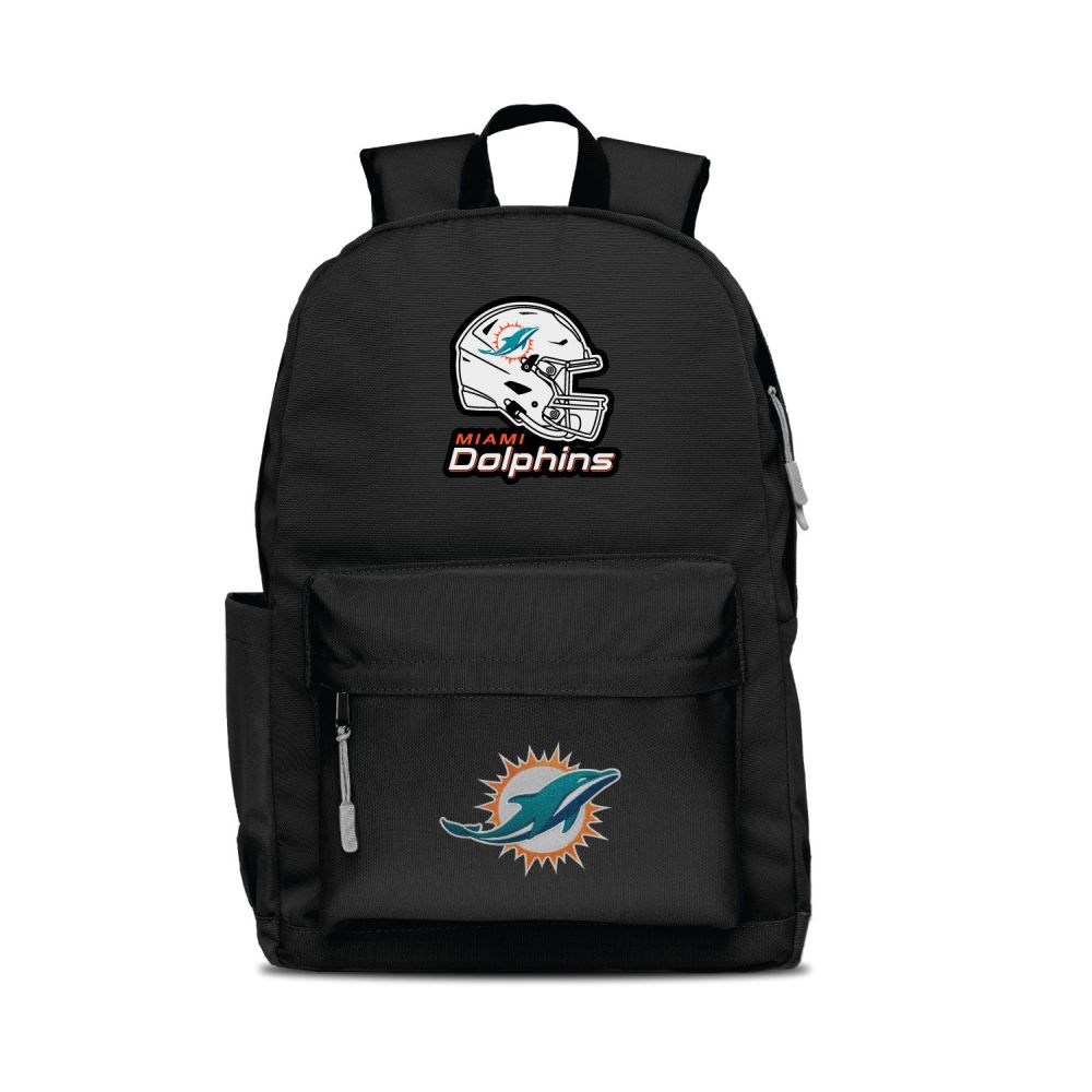 Miami Dolphins Two-Logo Campus Backpack, Black, with Gray Zipper