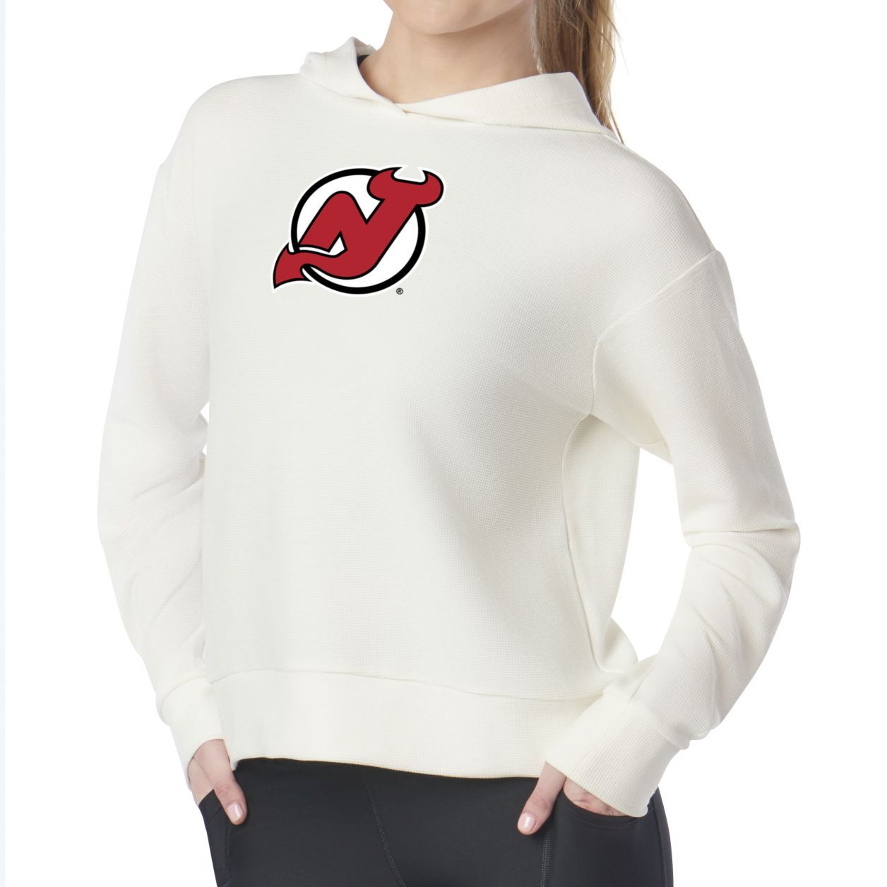 New Jersey Devils NHL Kadi Waffle Hoodie Coconut Cream Small