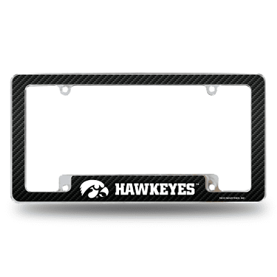 Iowa Hawkeyes Carbon Fiber 12" x 6" Chrome All Over Automotive License Plate Frame for Car/Truck/SUV