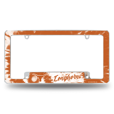 Texas Longhorns Tie Dye 12" x 6" Chrome All Over Automotive License Plate Frame for Car/Truck/SUV