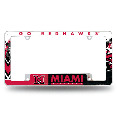Miami Of Ohio Redhawks Primary 12" x 6" Chrome All Over Automotive License Plate Frame for Car/Truck/SUV