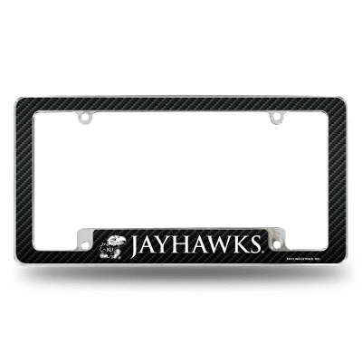 Kansas Jayhawks Carbon Fiber 12" x 6" Chrome All Over Automotive License Plate Frame for Car/Truck/SUV