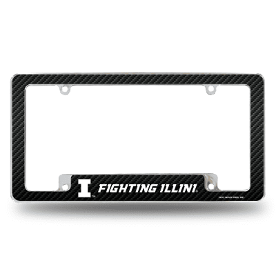Illinois Fighting Illini Black 12" x 6" Chrome All Over Automotive License Plate Frame for Car/Truck/SUV