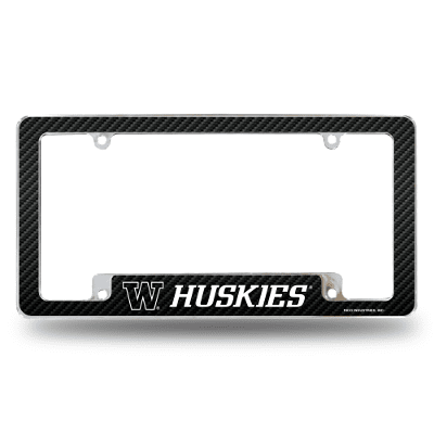 Washington Huskies Carbon Fiber 12" x 6" Chrome All Over Automotive License Plate Frame for Car/Truck/SUV