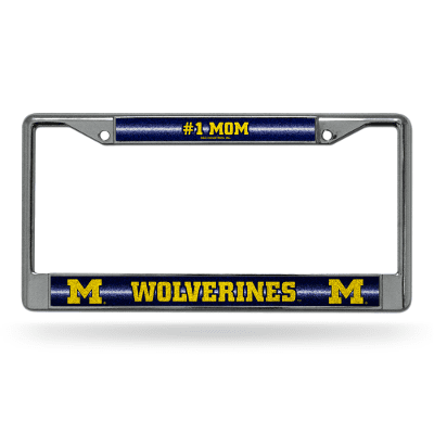 Michigan Wolverines #1 Mom 12" x 6" Silver Bling Chrome Car/Truck/SUV Auto Accessory