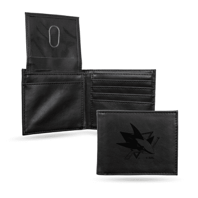 San Jose Sharks Black Laser Engraved Bill-fold Wallet